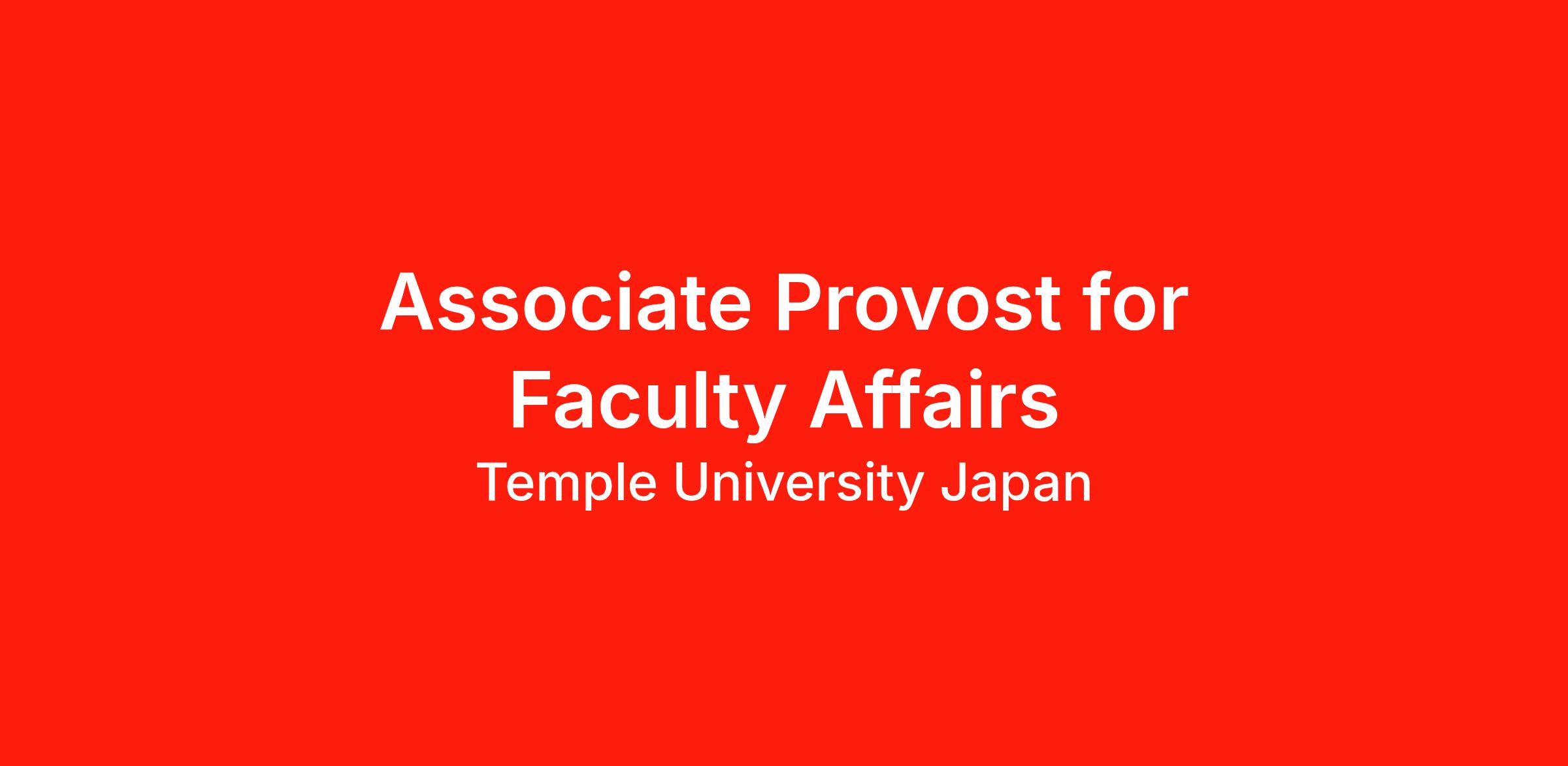 Reporting to TUJ’s Provost, the Associate Provost for Faculty Affairs (APFA) at the Japan Campus of Temple University is a new leadership position that will play a critical role in fostering TUJ’s uniquely diverse and vibrant faculty community. The Associate Provost is tasked with overseeing the full faculty life cycle, from hiring to onboarding to promotion to retirement, collaborating with both Academic Chairs/Directors and Human Resources to foster faculty talent. The successful candidate will have the opportunity to design, evaluate, and streamline initiatives and processes that support well-being and achievement at all stages of a faculty member’s career.