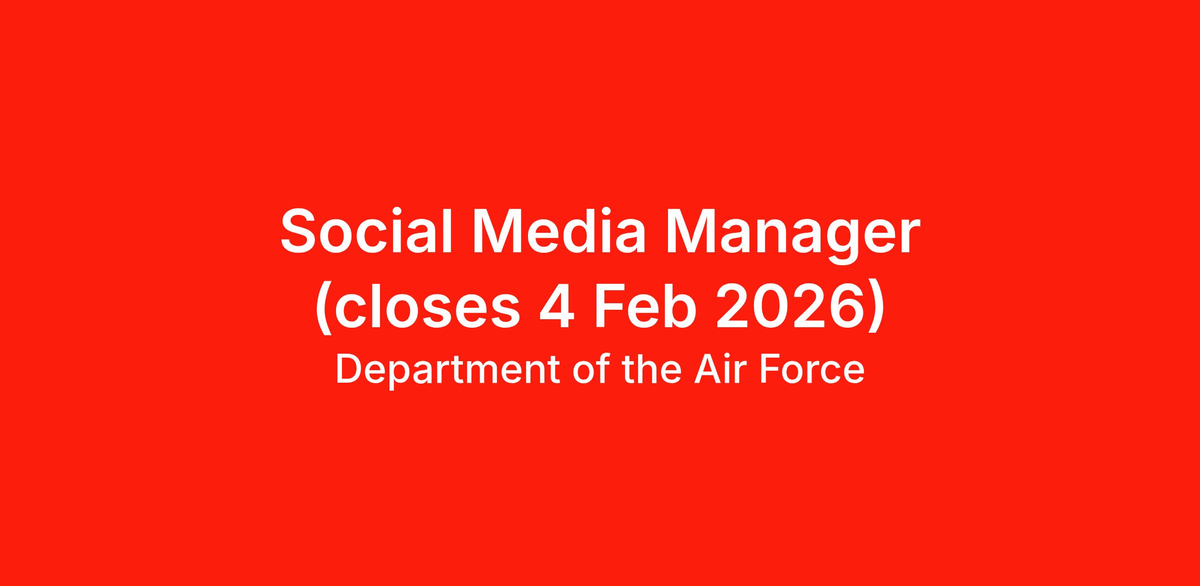 - In addition to social media responsibilities, the Social Media Manager may also perform general administrative tasks as needed. These include greeting patrons, routing incoming calls, and responding to in-person, phone, or email inquiries with professionalism and a strong emphasis on customer service. Other duties may be assigned in alignment with the mission of the Marketing Office and the 374th Force Support Squadron.